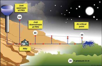 Without detracting from the latest advances in pressure management, it is critically important for water supply managers not to lose fo- cus on the real problem issues, as no piece of equipment, hydraulic or electronic, can replace a properly designed, well-managed Figure 2: Typical pressure during off-peak periods and well-maintained network. Ensuring that boundary valves are closed or open on a regular basis, as per the network design, is often of greater importance than pressure control, which will in any event not operate properly when a pressure management zone has been compromised by the unauthorised opening or closing of boundary valves.