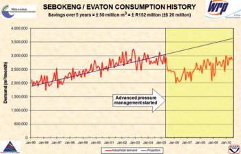 In 2004, the municipality appointed WRP Pty Ltd to design and commission what is one of the largest advanced pressure management installations in the world, as the first phase of a long term strategy to reduce wastage in the area. The project involved no financial input from the municipality and even the initial capital costs were borne in total by the project team. The project was, effectively, a small-scale public-private partnership (PPP) involving a simple risk-reward model and the original concept is discussed in detail by Mckenzie and Wegelin (2005). It basically reduces water pressure in the area during off-peak periods and in this manner reduces the water lost through leakage.